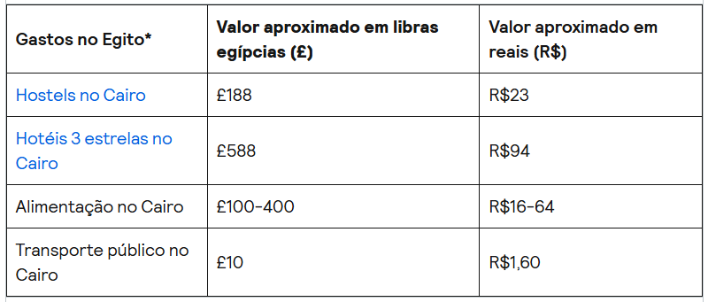 Que tal conhecer um país na África Mediterrânea? Além de ter frequentemente bons preços de passagens aéreas, o Egito possui um custo de vida baixo. Para você ter uma ideia, na capital Cairo você pode encontrar hostels com diárias em quartos compartilhados a partir de R$11, bons hotéis a partir de R$80 e refeições a partir de R$16.