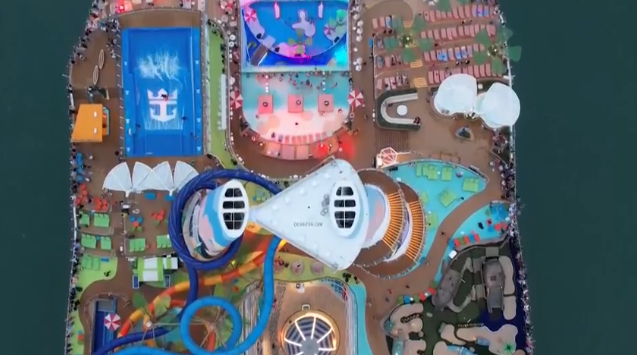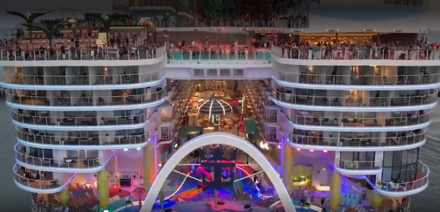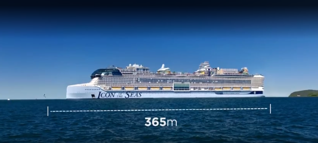 Maior cruzeiro do mundo e também o maior parque aquático disponível nos mares, o Icon of the Seas tem cinco vezes o peso do Titanic e é quase 100 metros mais comprido do que o famoso navio. Ele possui capacidade para quase 10 mil pessoas, sendo 7,6 mil hóspedes e 2.350 tripulantes.