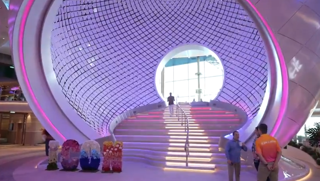 O navio possui 7 piscinas, 9 hidromassagens e 20 deques, além de atrações de alta dose de adrenalina, como a “Borda da Coroa”, que permite que os passageiros andem sobre uma plataforma que fica diretamente acima do mar. Além disso, o cruzeiro é dividido em oito bairros e cada um possui suas próprias atrações.